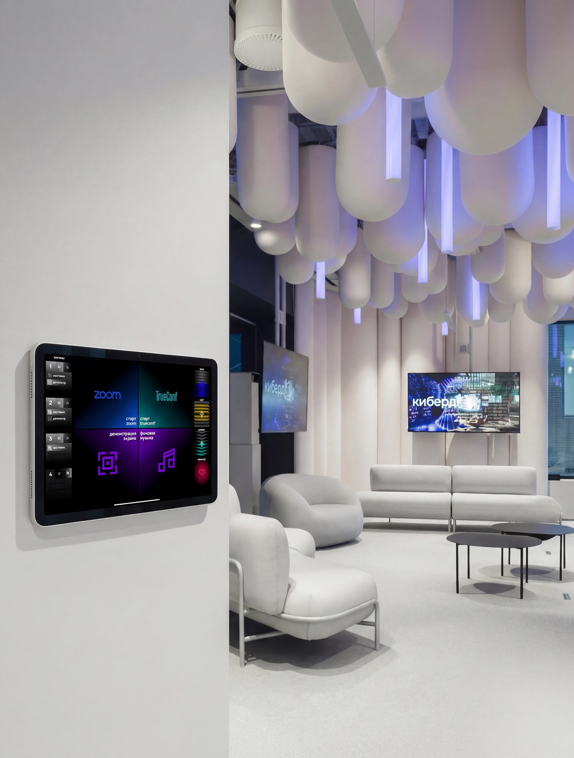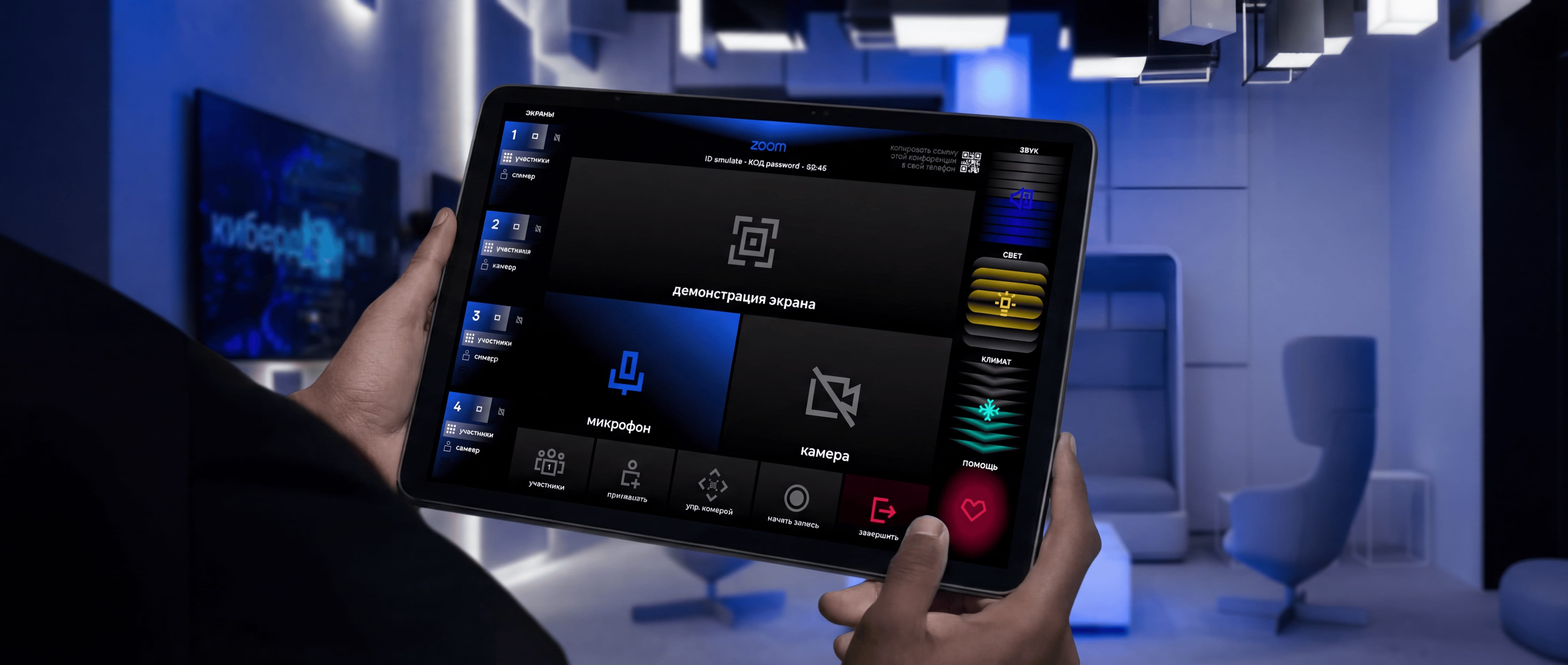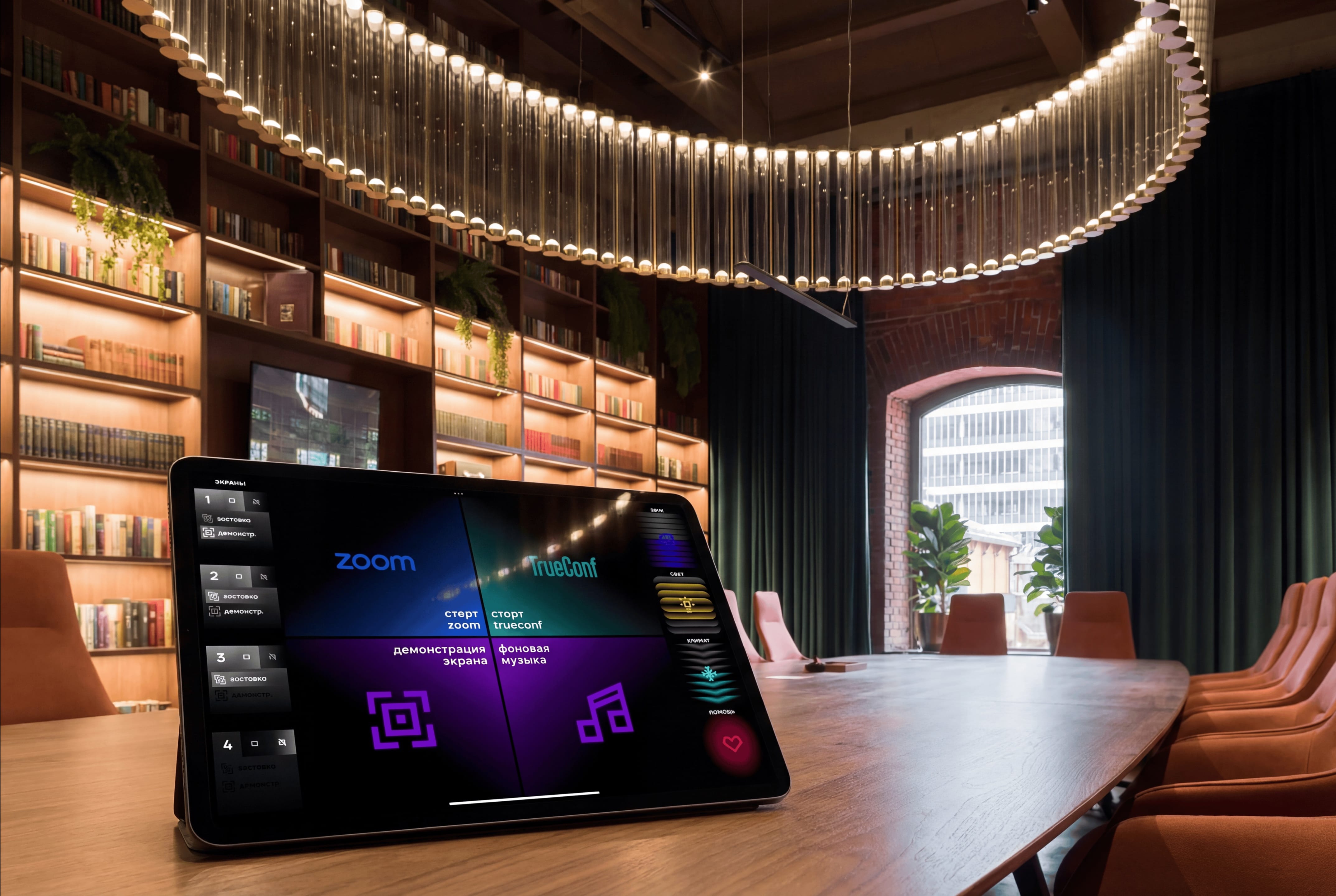 Кибердом — кибербез-хаб в центре Москвы: «умное» пространство для встреч и гибридных событий «под ключ», где регулярно обсуждают вопросы окологосударственной важности. Поэтому мы отказались от сторонних систем и сделали полностью кастомную разработку без рисков утечек того, что звучит внутри переговорной.